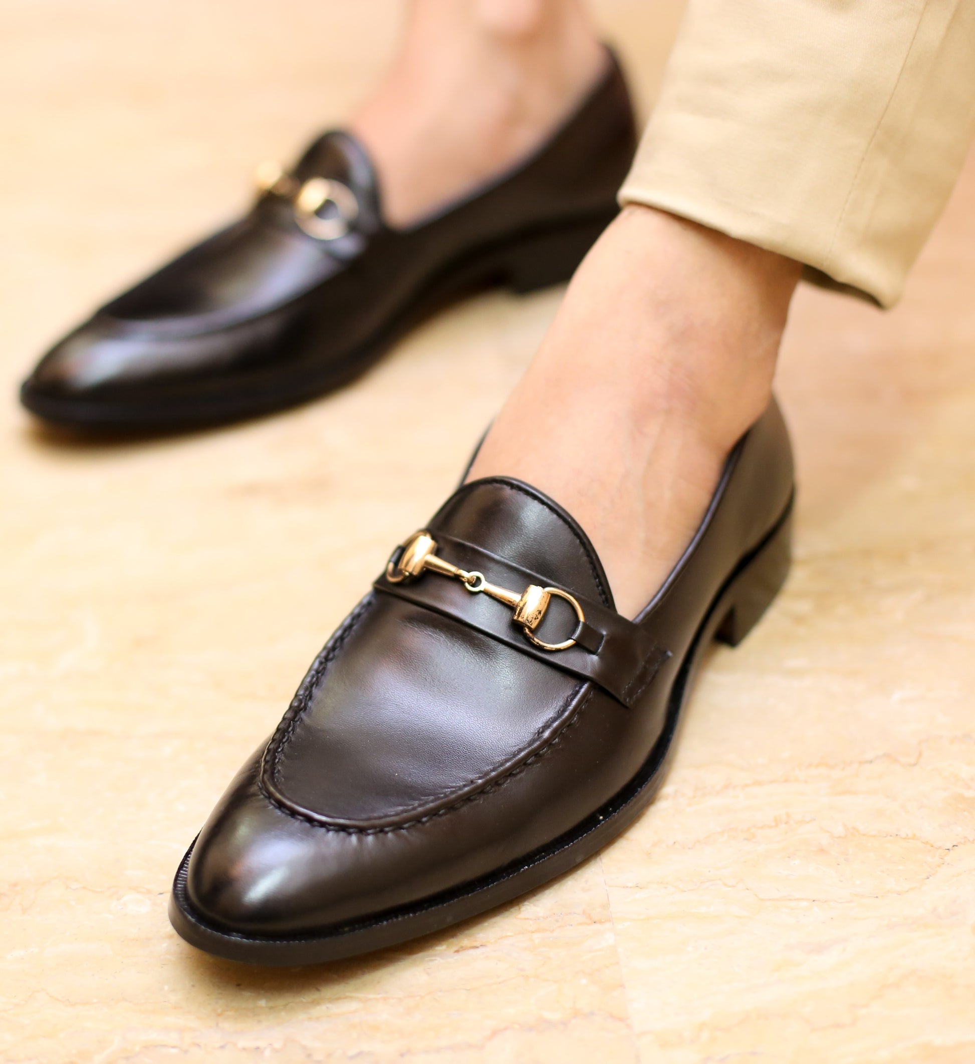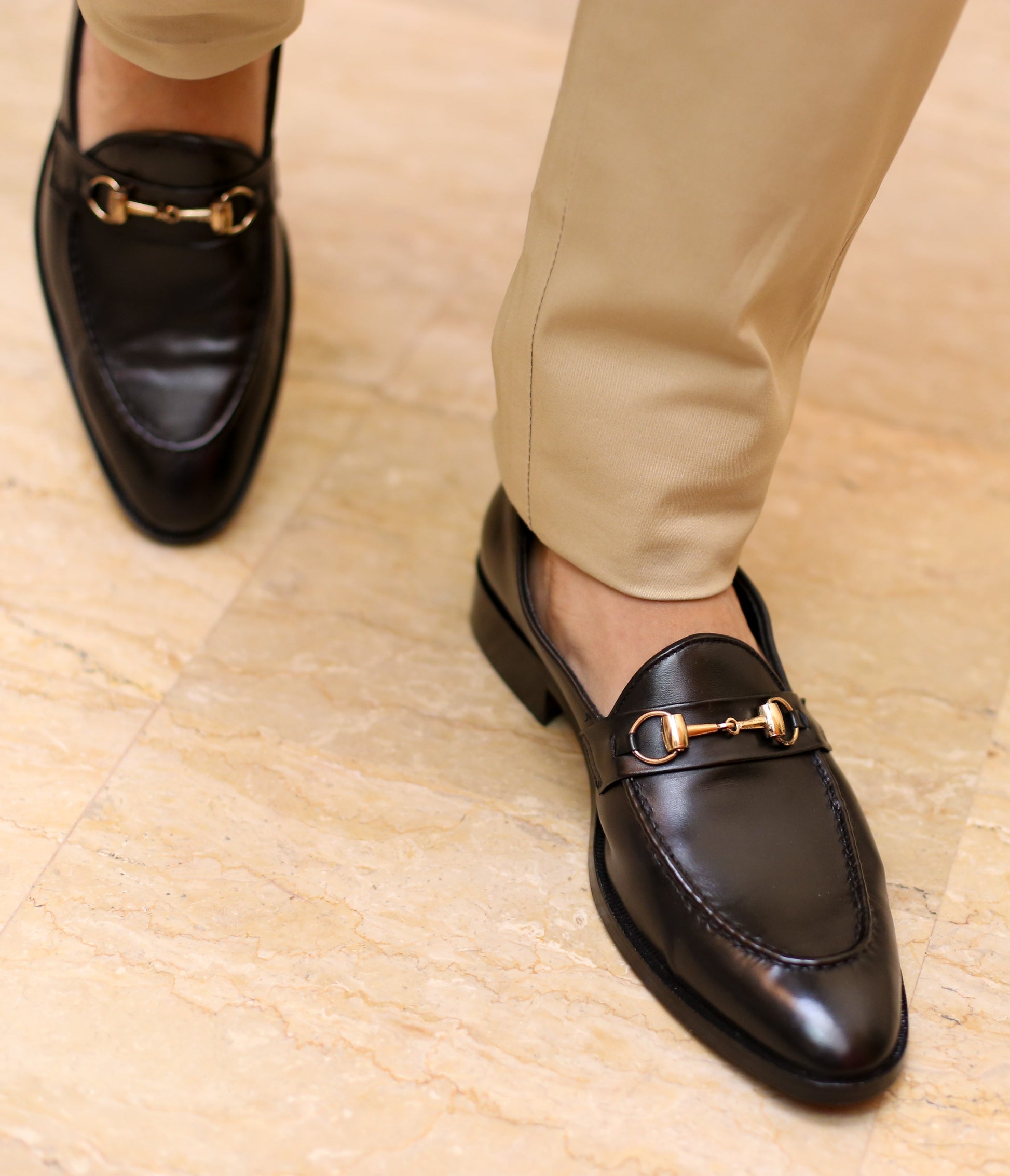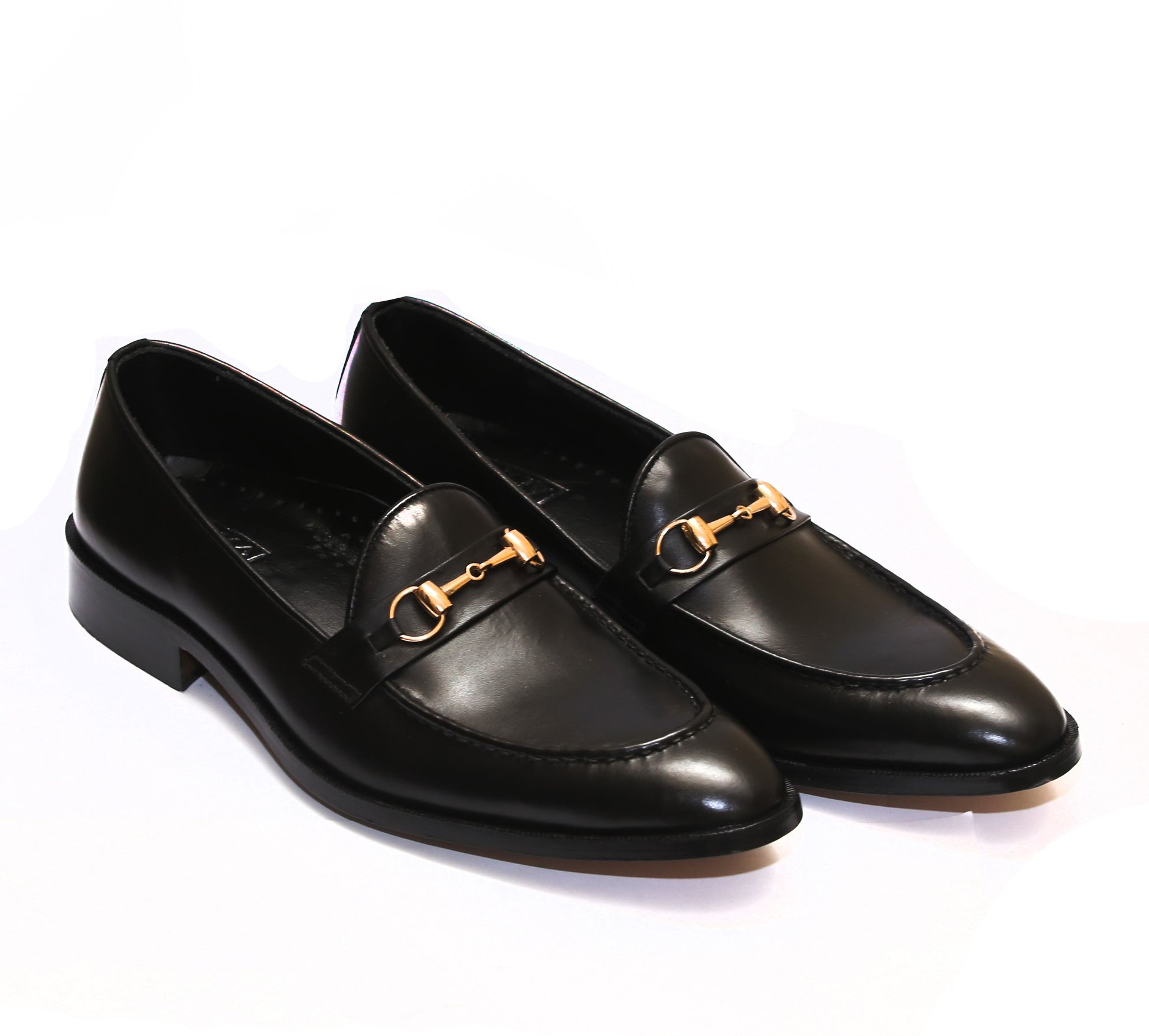 The Alasso Wears hand-made loafers, an epitome of craftsmanship and elegance. These shining black loafers are crafted from cow leather, offering a luxurious feel and exceptional durability. The hand-woven design adds a touch of artisanal charm, while the patina finish on the outer leather enhances its rich, deep luster. A sleek thin golden buckle provides a sophisticated contrast, making these loafers a perfect blend of style and refinement.