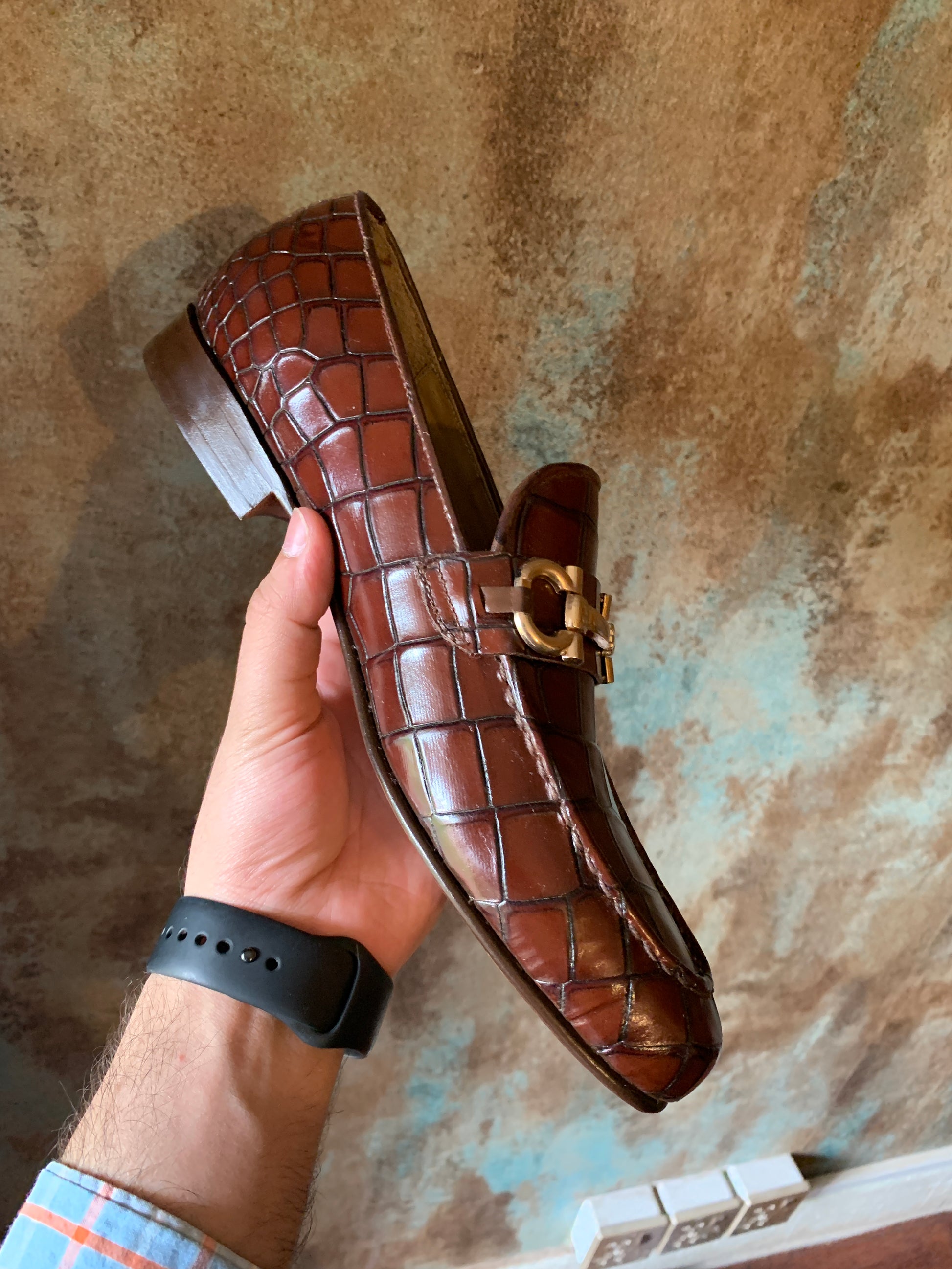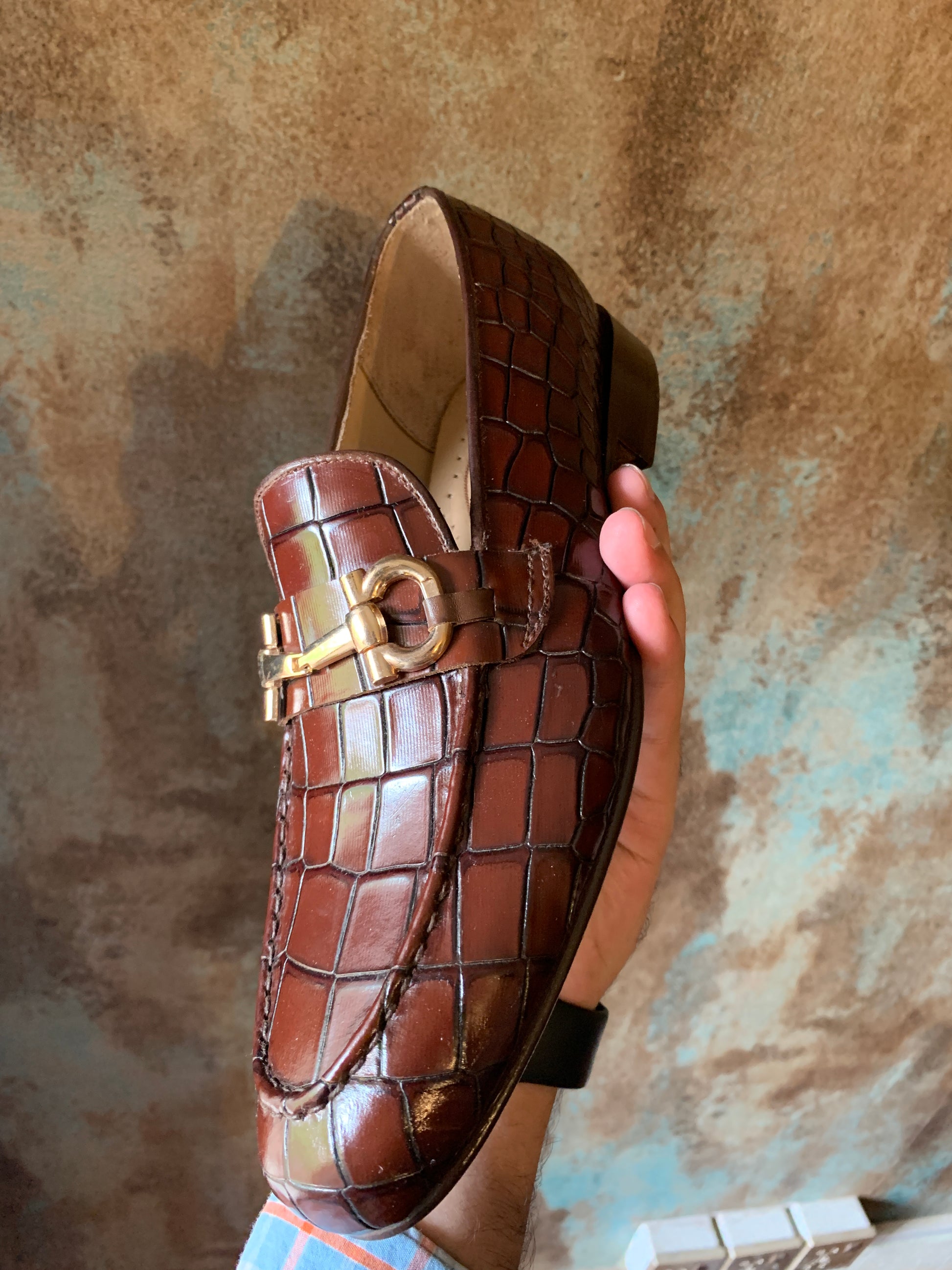 The Alasso Croco is a remarkable addition to our collection that blends elegance and comfort seamlessly. Crafted from 100% genuine leather, this brown shoe features a distinctive check design that adds a touch of refinement to its classic style. Designed to offer superior comfort, the Alasso Croco is the perfect choice for those who appreciate both style and practicality. With its high-quality construction and eye-catching look, this shoe is sure to attract attention and provide lasting wear.